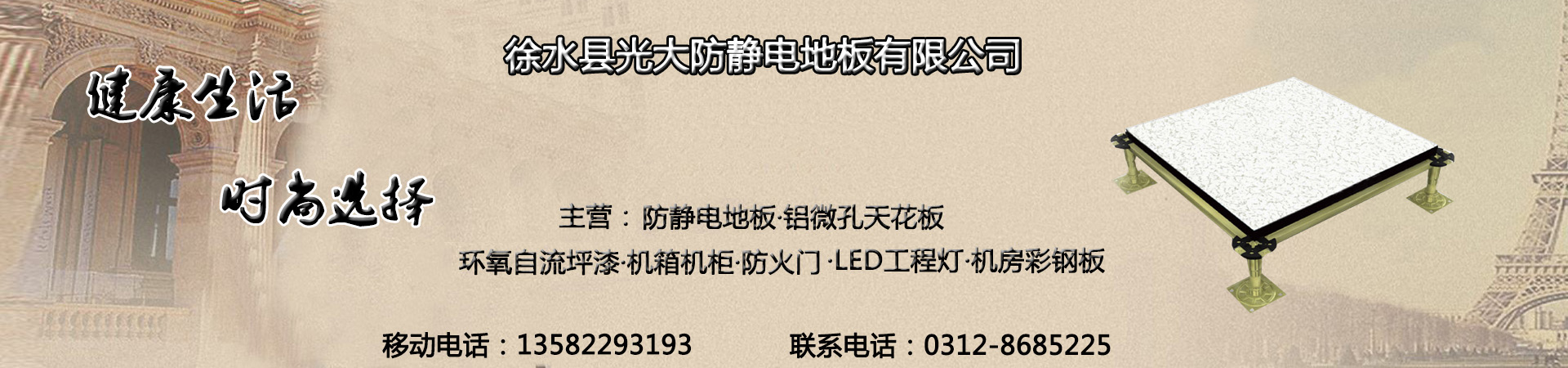 徐水縣光大防靜電地板有限公司,原光大電子機房設備廠。成立于1989年,位于徐水縣環城東路。徐水縣城地處京、津、石三大城市交匯之地,京廣鐵路、京深高速公路橫貫其中。為企業發展,各方人士來徐提供了非常便利的交通條件?! ∥夜臼菍I從事防靜電地板,鋁微孔天花板生產,銷售、機房設計、裝修施工于一體的專業廠家。具備一批專業技術人才和管理素質較高的經濟實體。本單位生產的抗靜電活動地板經國家指定部門的鑒定,質量達到國內先進水平,組裝方便,高度可自由調整,有很好的互換性,靈活性,機房配套產品首選?! ∽猿闪⒁詠?,公司始終秉承質量第一,以價取勝的競爭理念。多年來光大電子機房設備有限公司以其硬朗產品質量,良好的商業信譽,嚴格的企業管理,迅速發展···